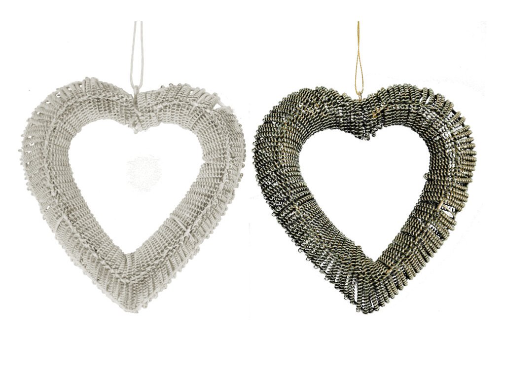 Srdce drôtené pletené biele, starozlatá, V|Ego dekor