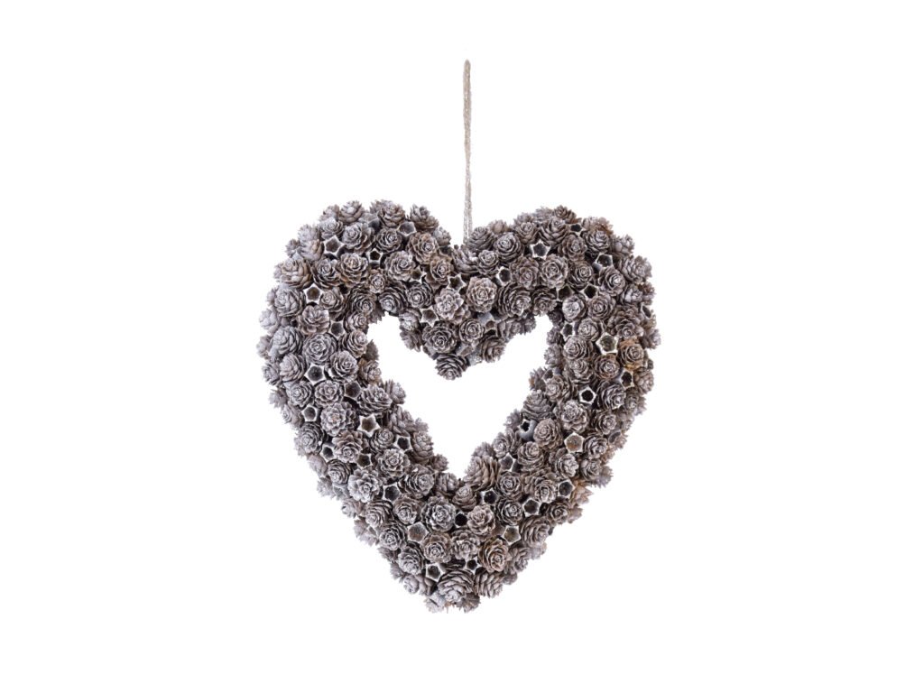 Srdce s glitrami Šišky a hviezdy, hnedá|strieborná, 32x|Ego dekor