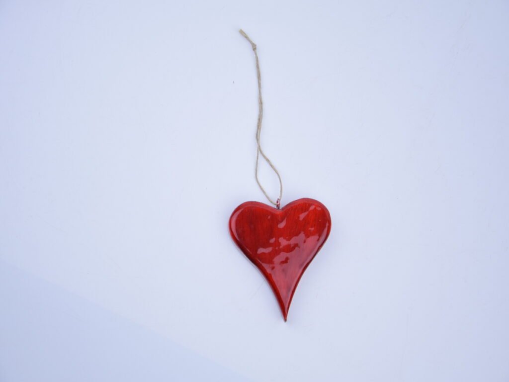 Srdce závesné, mangové drevo+ smalt, červená, 9,5x2x10cm, ks