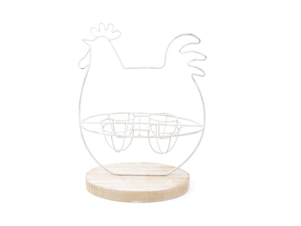Stojan na vajíčka sliepky, kov/drevo, 12x15x28cm,|Ego dekor