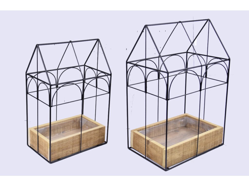 Stojan s podnosom HOUSE, kov/drevo, 32x49x21/27x40x17cm|Ego dekor