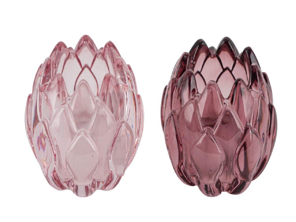 Svietnik ARTYČOK, sklo, ružová, 8x5, 5cm