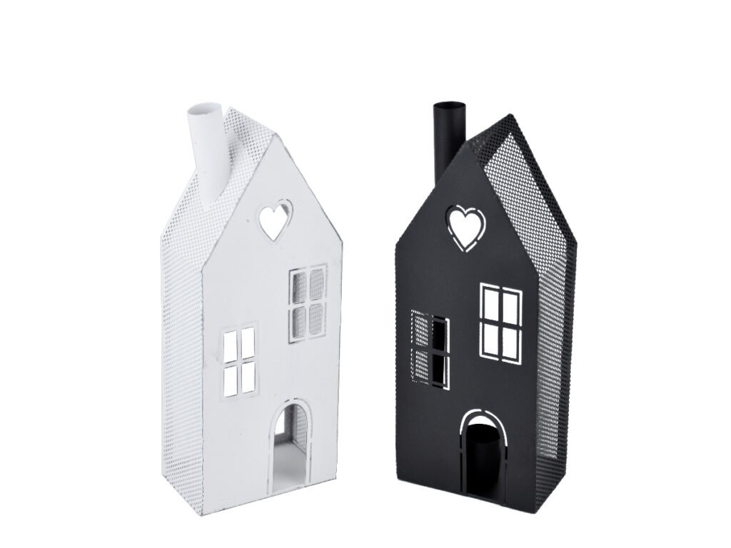 Svietnik domček, kov, čierna / biela, 10x24x6, 5cm | Ego dekor