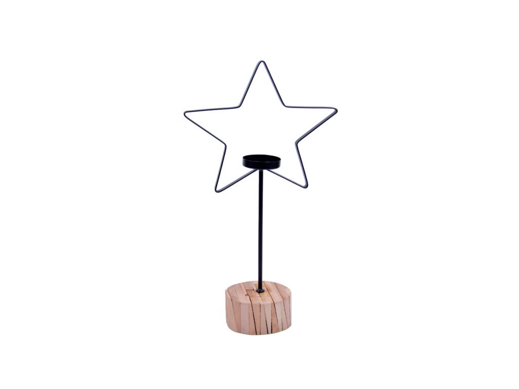 Svietnik hviezda na podstavci, kov, čierna, 20x42x10cm, ks|Ego dekor