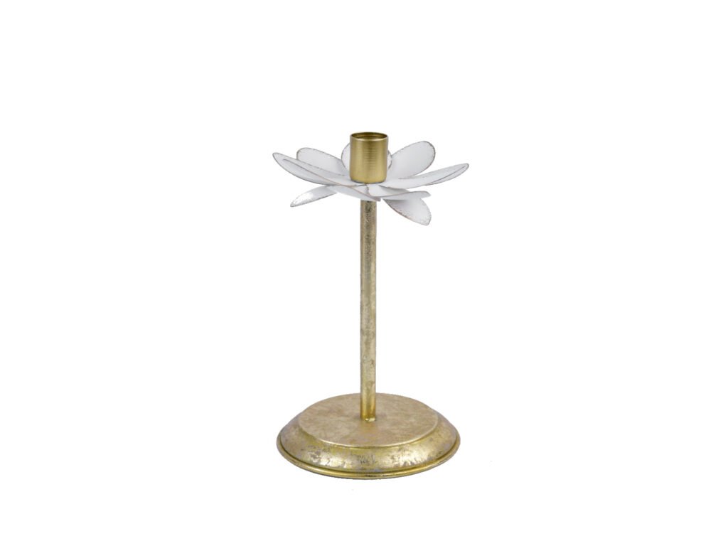 Svietnik kvetina, kov, zlatá/biela, 13x23x13cm, ks|Ego dekor
