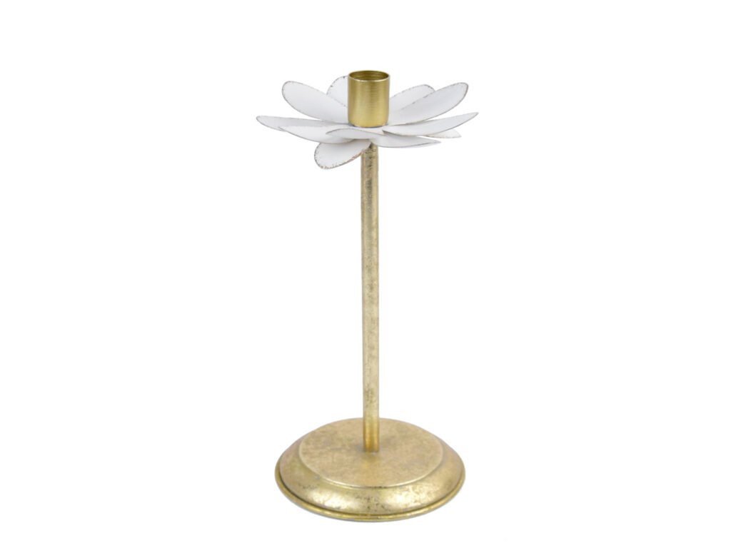 Svietnik kvetina, kov, zlatá/biela, 13x31x13cm, ks|Ego dekor