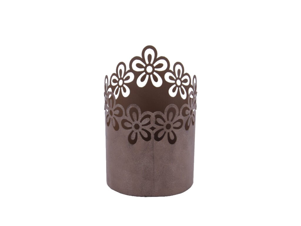 Svietnik/obal na kvetináč vyrezávaný, kov, hnedá, pr.9x12cm, ks|Ego dekor