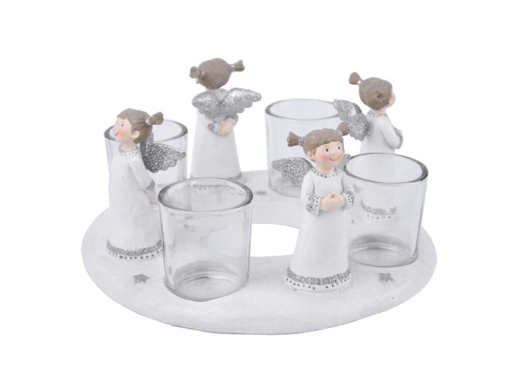 Svietnik s anjelmi, polystone, biela/strieborná, 22x11x22cm, ks|Ego dekor