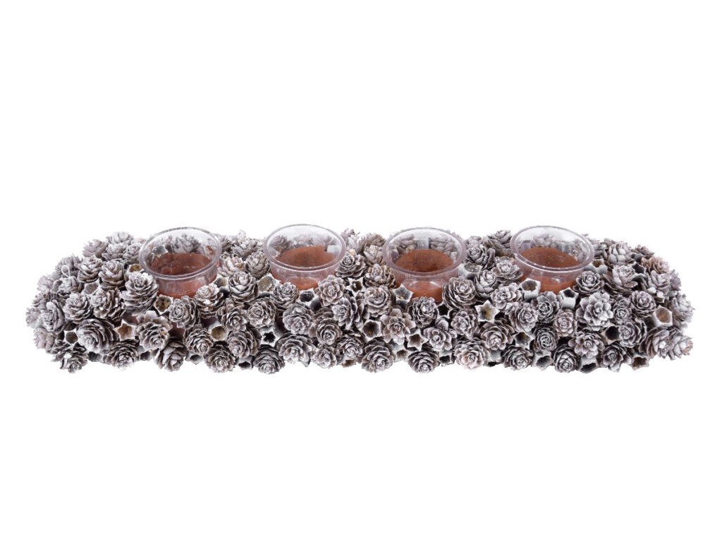 Svietnik s glitrami na 4 sviečky Šišky a hviezdy, hnedá||Ego dekor