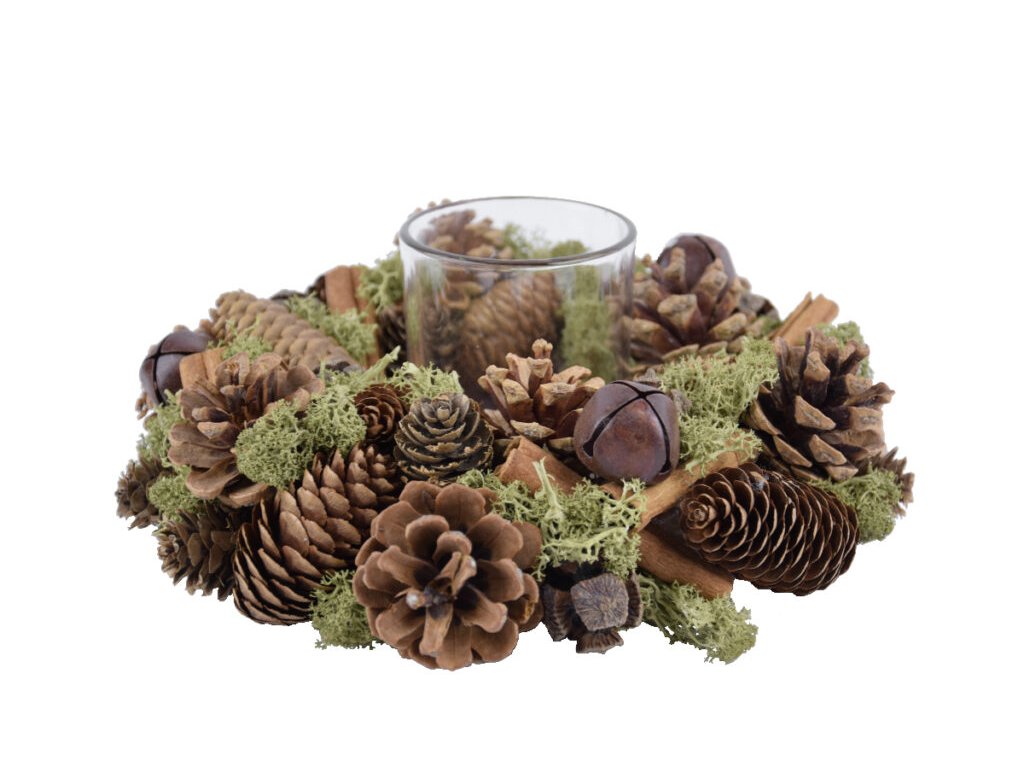 Svietnik so šiškami NATURE, prírodná, zelená/hnedá, pr.25x10cm, ks|Ego dekor