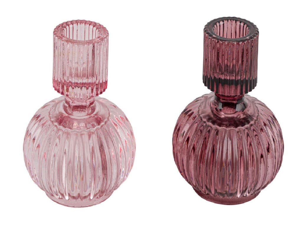 Svietnik VASE, sklo, ružová, 7,5x8,5cm