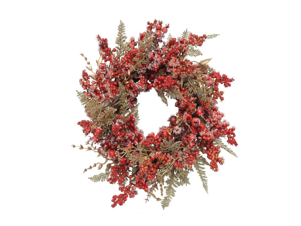 Veniec bobule, plast, červená/zelená, 40x40x13cm, ks|Ego dekor