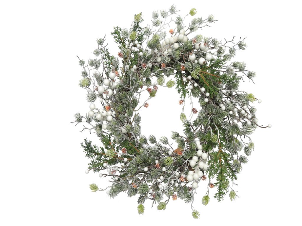 Veniec korálky, plast, zelená/biela, 56x56x11cm, ks|Ego dekor