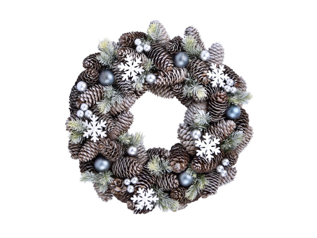 Veniec PINE s vločkami, prírodná/sivá/biela, 34x34x8|Ego dekor