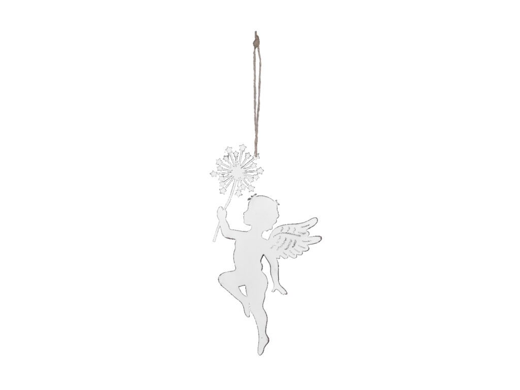 Záves anjel s kvetinou, biela, 13,5x26x0,01cm, ks|Ego dekor