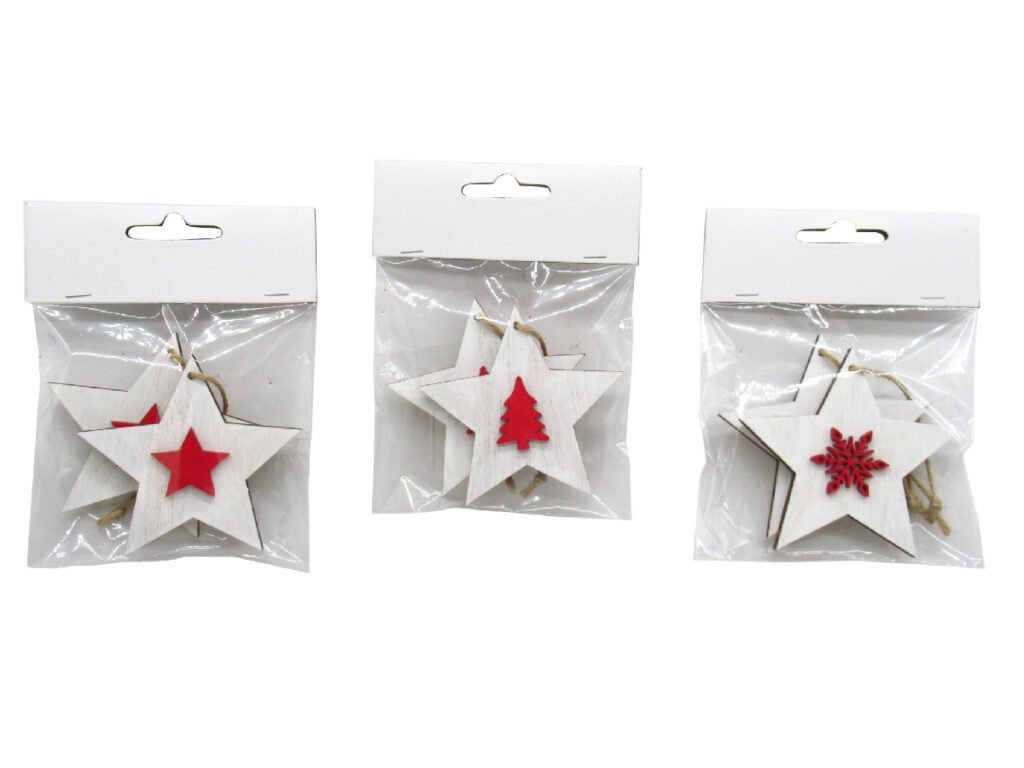 Záves hviezda, drevo, biela/červená, 8,5x8,5x0,5cm/S2|Ego dekor