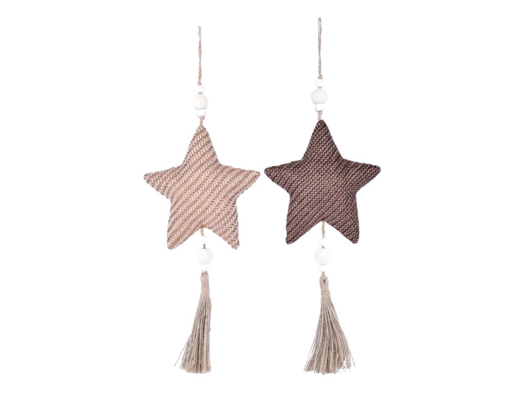 Záves hviezda so strapcami, textil, hnedá/béžová, 13x36x4cm|Ego dekor