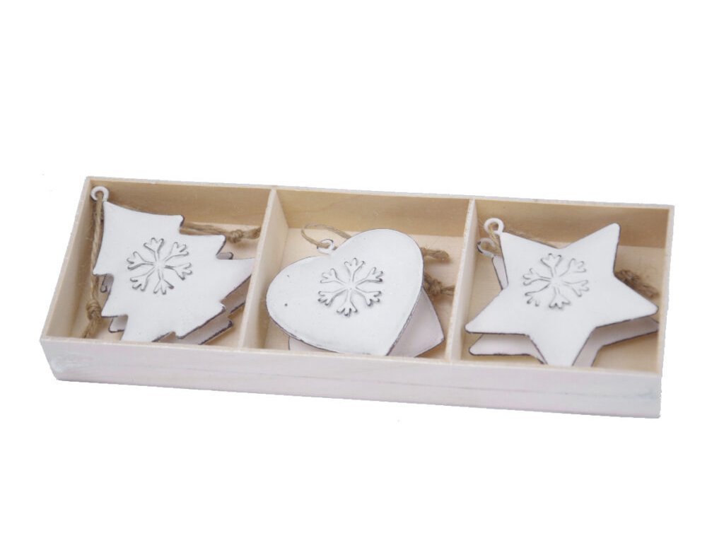 Záves hviezda/srdce/strom s vločkou, biela, 21,5x3x7|Ego dekor