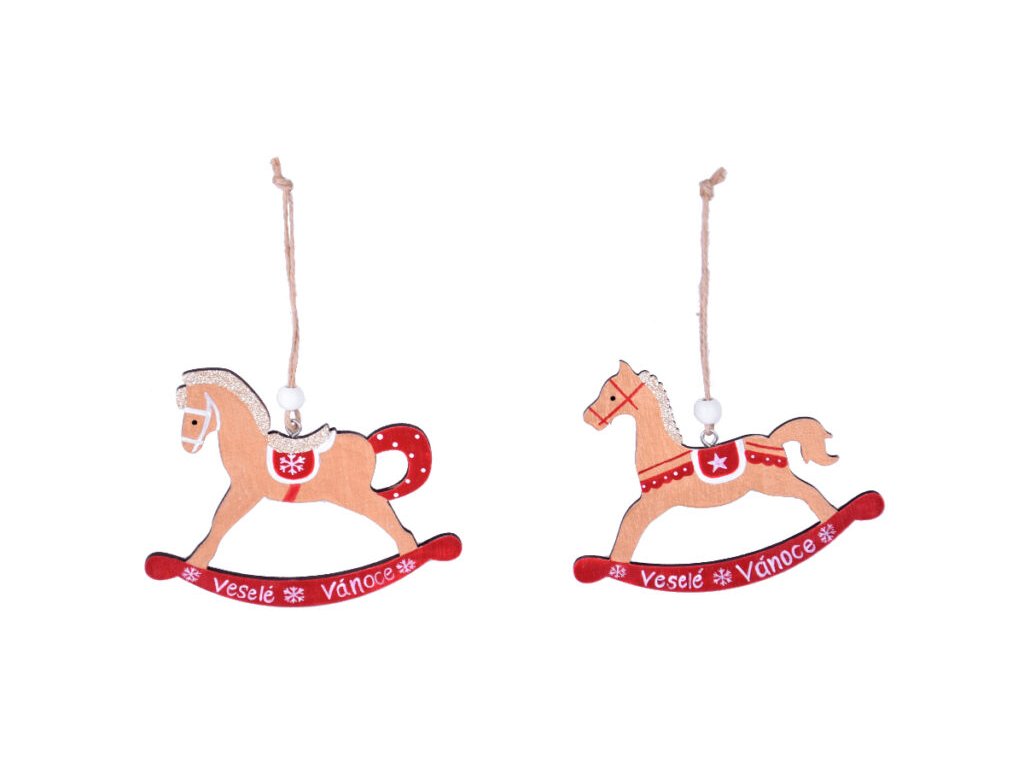 Záves koník hojdací, drevo, zlatá/červená, 12x9,5x1cm|Ego dekor