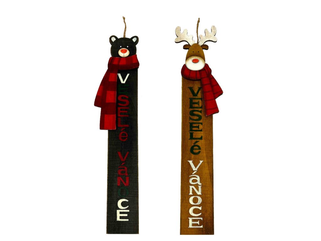 Záves medveď/sôb s nápisom, drevo, hnedá/červená, 11x50x1,5cm|Ego dekor