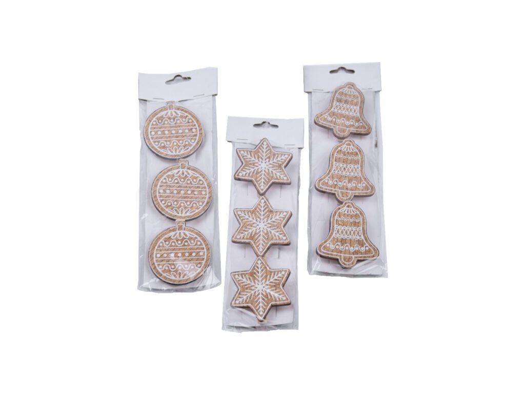 Záves perníček guľa/zvonček/hviezda, drevo, 6,5x7,5x1,5cm/S3|Ego dekor