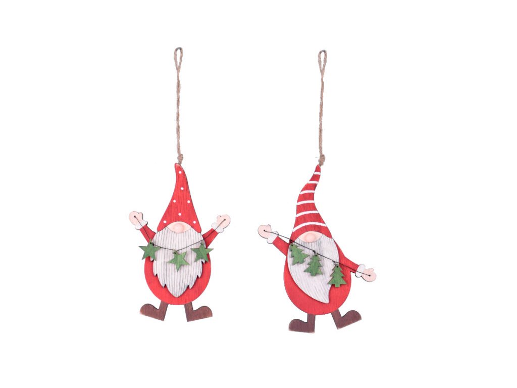 Záves škriatok s hviezdami, drevo, červená, 11x17x1, 5cm|Ego dekor
