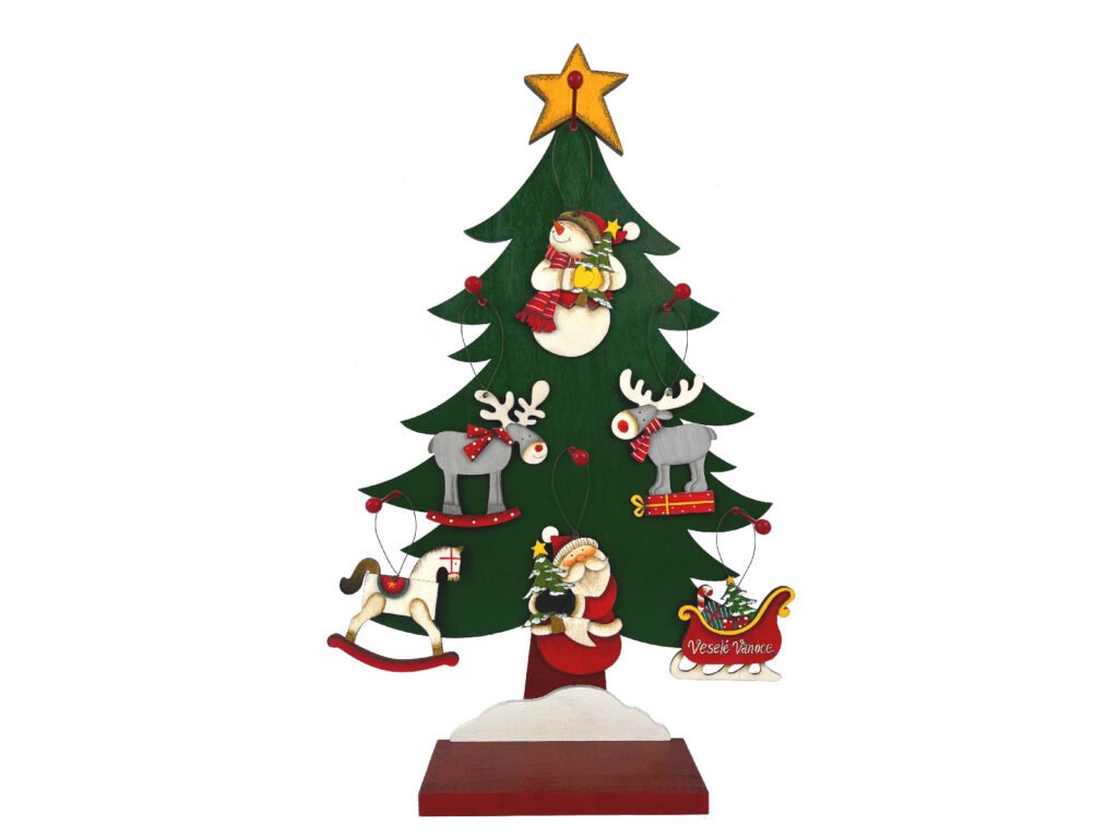 Záves snehuliak/santa/sob, drevo, červená/biela, 12x17x0, 5cm, 48ks|Ego dekor