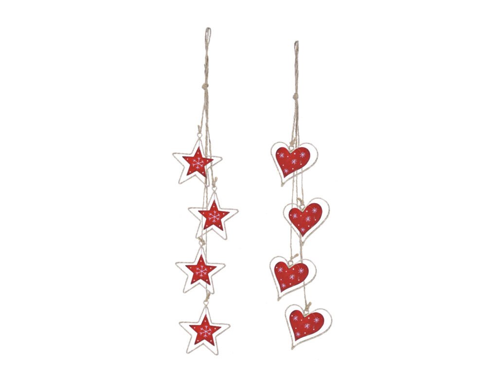Záves srdca / hviezda, červená, 8x48x0, 2cm | Ego dekor