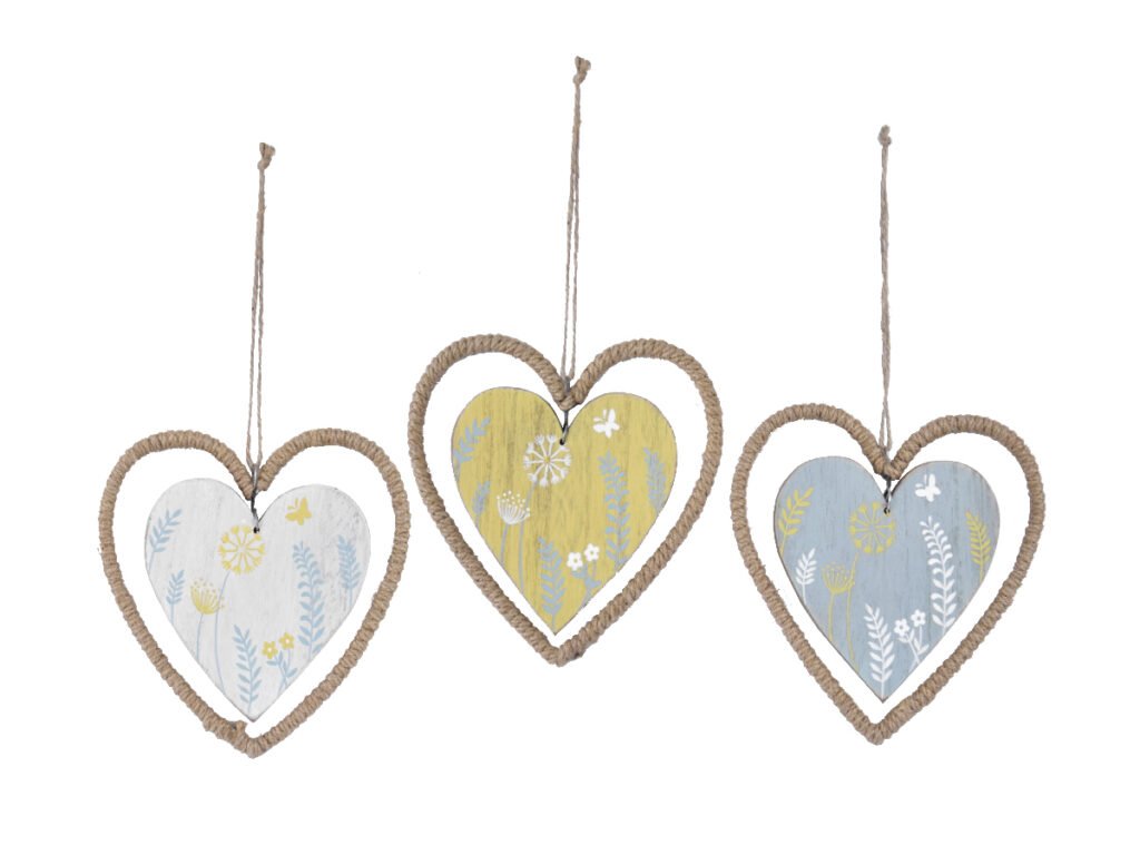 Záves srdca s kvetmi, MDF, biela/modrá/žltá, pr.15x1cm|Ego dekor