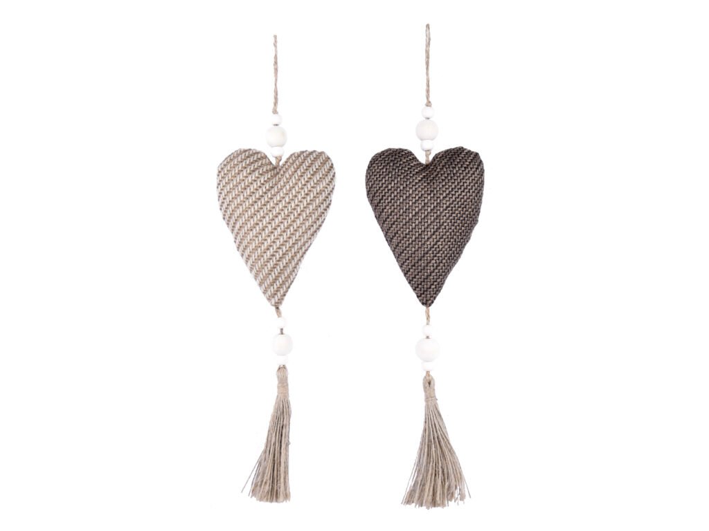 Záves srdca so strapcami, textil, hnedá/béžová, 10x37x4cm|Ego dekor