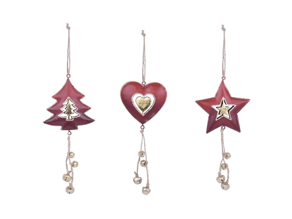 Záves srdca/strom/hviezda s rolničkou, červená/zlat|Ego dekor