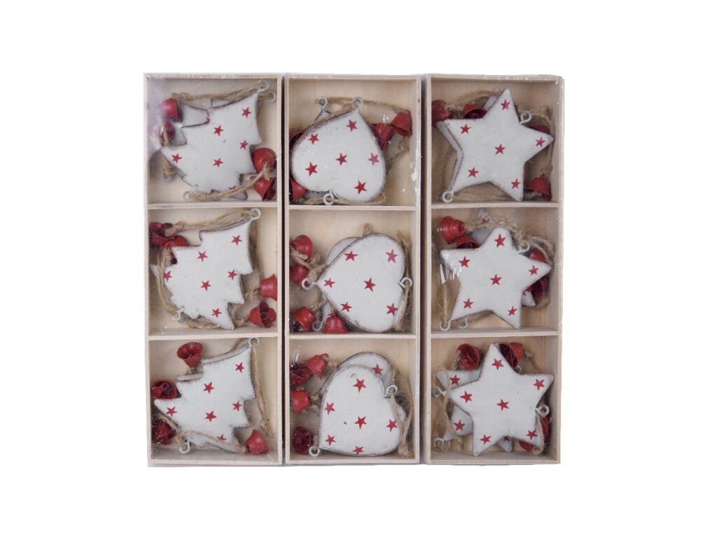 Záves srdca/stromček/hviezda, 6 ks/box, biela, 22,5x2|Ego dekor