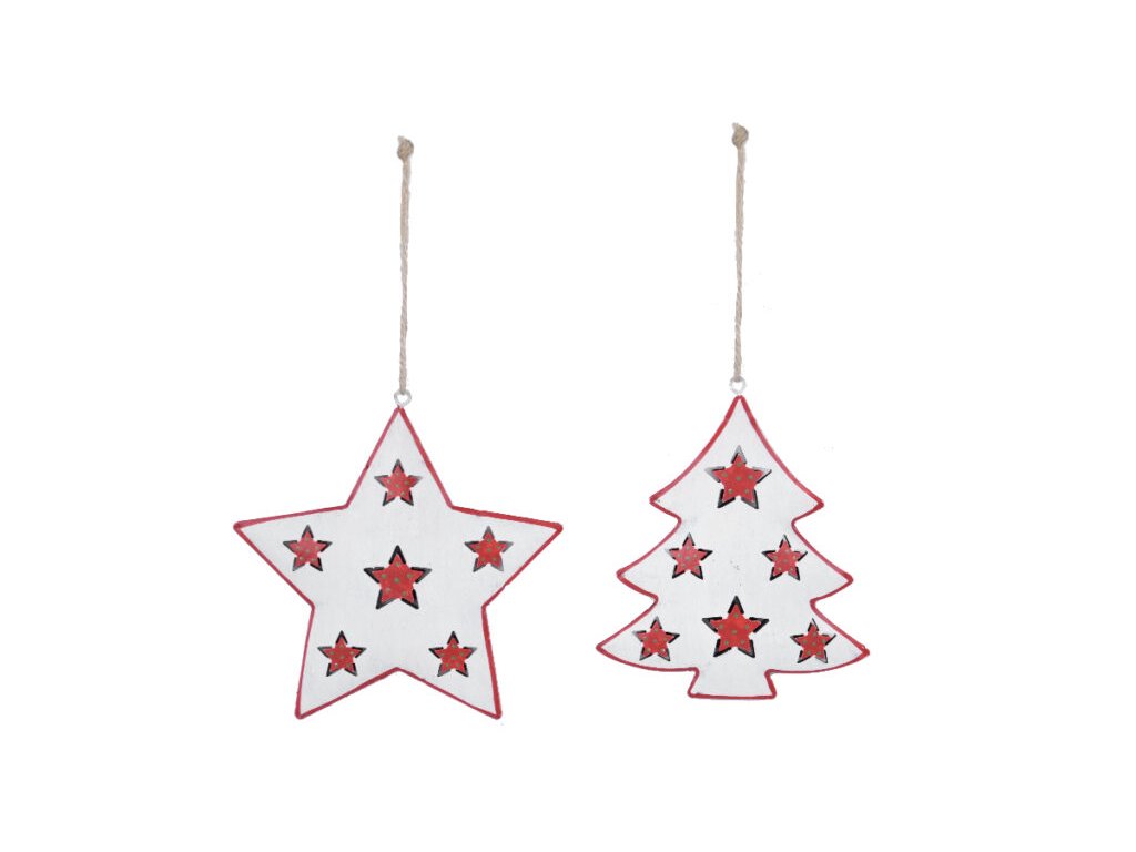 Záves stromček/hviezda, biela, 10,5x12,5x1,4cm|Ego dekor