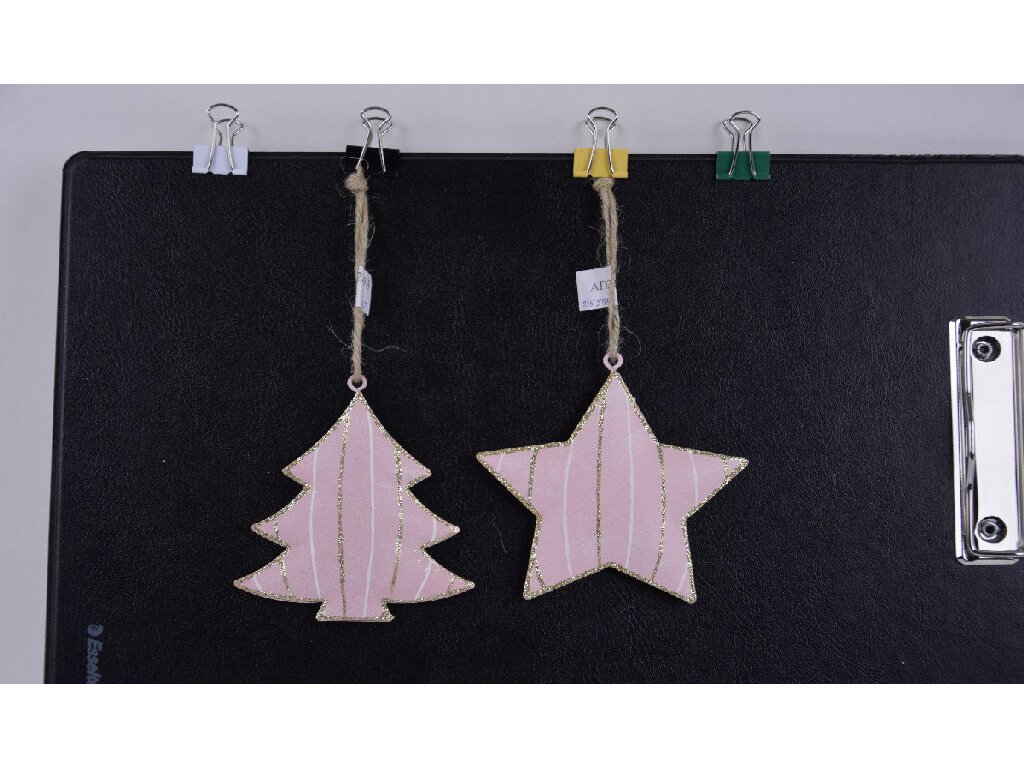 Záves stromček / hviezda, kovový, 9,5 cm, ružová | Ego dekor