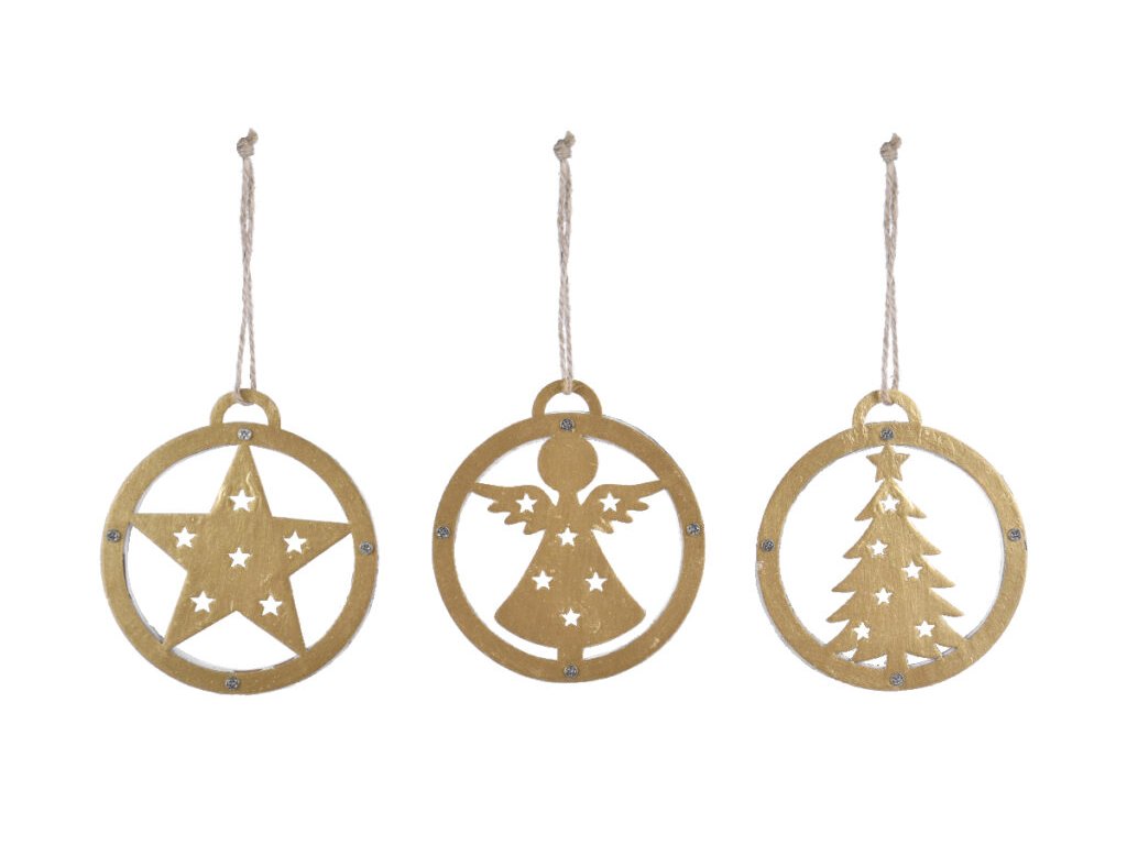 Záves stromček/hviezda/anjel, zlatá, 8,5x9,5x0,6cm,|Ego dekor