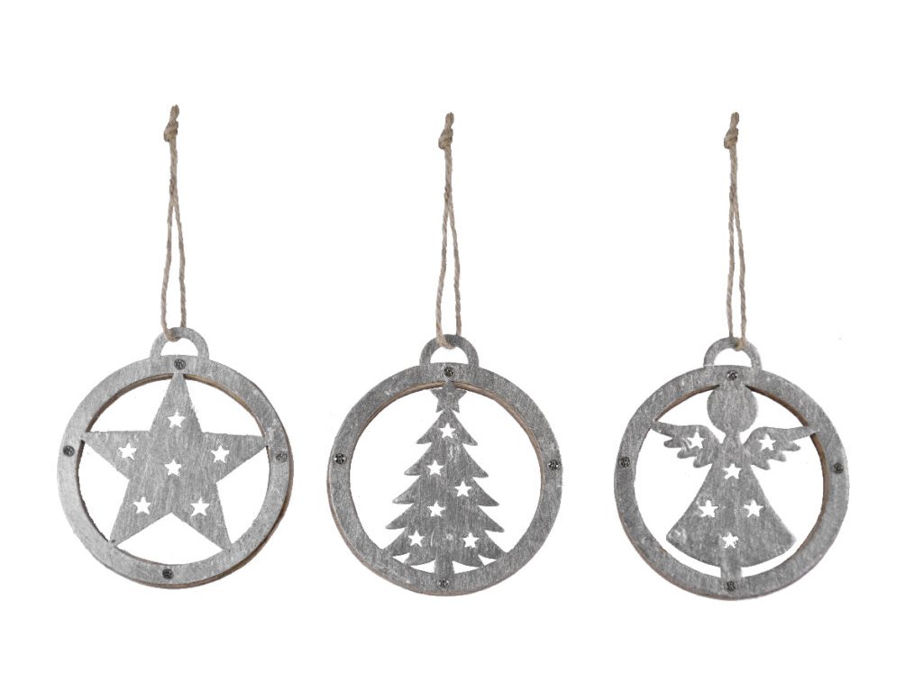 Záves stromček/hviezda/anjel v kruhu, strieborná, 8,5x|Ego dekor